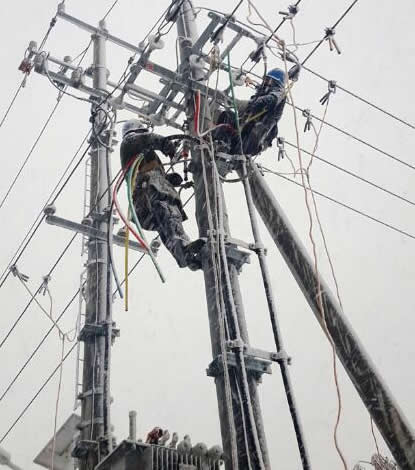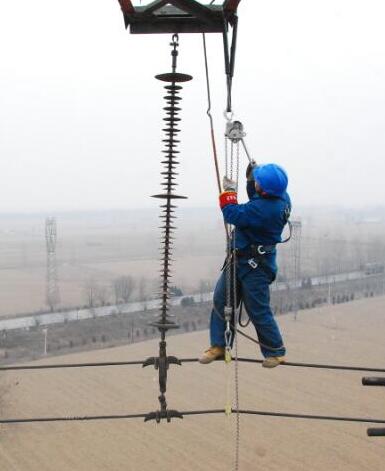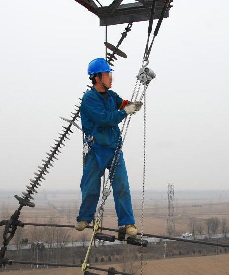 電力設施檢修電力工人攜帶鋁合金手扳葫蘆檢修作業(yè)...